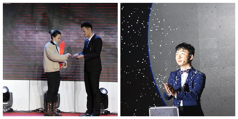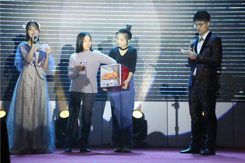 另外,晚会还设置了抽奖环节,三次抽奖分别由beat365正版唯一官网辅导员吕佳蔚、党委副书记罗梅娟和完美世界集团校招和高校关系中心高级总监王贝贝为在场同学抽取了“小幸运”。最后,辅导员老师们的节目压轴登场:由王熙闻、李根、董昊灵老师联袂带来的《飘向北方》唱出了时代的正能量;辅导员群舞《乘风破浪的姐姐们》伴随着节奏明快的音乐、动感的舞步演绎出了乘风破浪的活力与气势,赢得了阵阵掌声,也为这场晚会画上了圆满的句号。