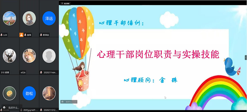 沙河校区于10月27日、29日开展了两场线上心理干部岗位职责与实操技能培训,学院大一和大二年级全体心理委员和宿舍心理负责人参与。培训主题分别为“危机识别与应对策略”、“如何履行心理干部职责”,金老师从心理委员和宿舍心理负责人的角度出发,从听、问、说三个不同的角度切入,讲解了心理辅导中一些基本的原则,要求心理负责人善于倾听、掌握提问的技巧、共情地去回答,点明了绝对不能使用的话语和句式,让心理负责人在反思过去工作经历之中收获进步与成长,让新上任的心理负责人工作能力得到强化。