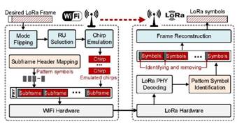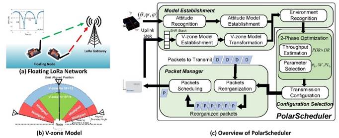 在录用的论文中,研究组发现CTC在强弱网元间存在严重的载荷不对称问题,提出基于多子帧聚合的对等跨技术传输方法——WiRa,为跨技术通信的双向对等互联提供技术支撑;面向低功耗广域网,提出一种基于CAD结果概率分析的跨信道扫描技术,实现对给定频率范围内LoRa信道占用情况的高效准确扫描能力,为LoRa信道接入、应急通信信道发现等重要应用提供基础的信道认知服务;在国际上率先关注水域场景中漂浮物联网传输问题,建立了浮动节点传输链路质量的V-Zone模型,刻画极化失配链路在不同传输配置下的传输质量,并提出基于姿态认知的动态传输控制方法,有效提升LoRa节点传输的稳定性和吞吐量。