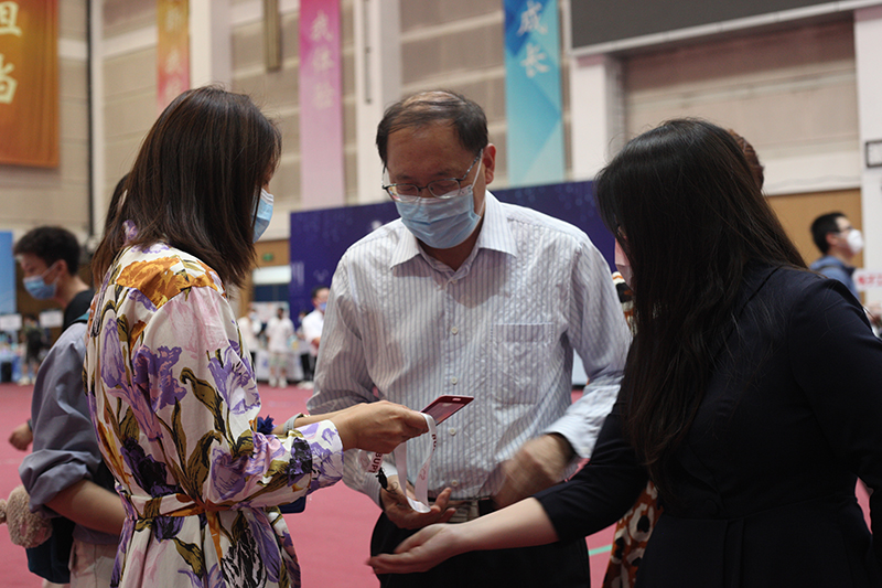 吴书记一行向学院领导了解了学院迎新的整体情况,对疫情防控、志愿服务等工作进行检查指导,对学院在学科水平和生源质量两方面都表示了认可。吴书记向志愿者询问了现场的报到情况,对颇具计算机特色的创意迎新数字化“微笑墙”表示了肯定,并对志愿者表示了亲切的慰问。