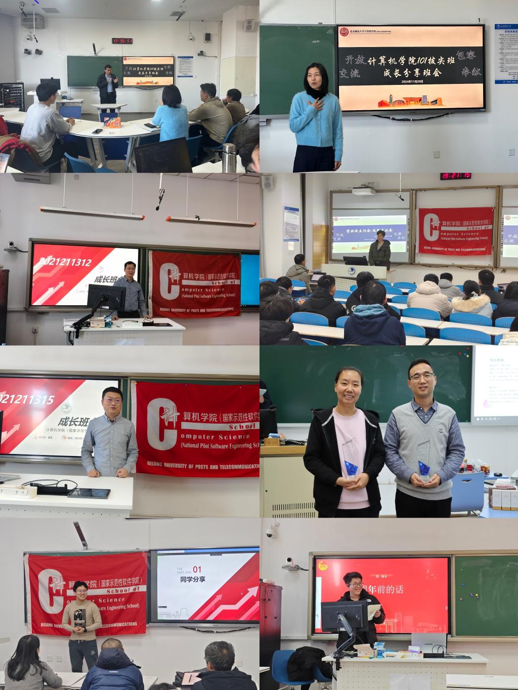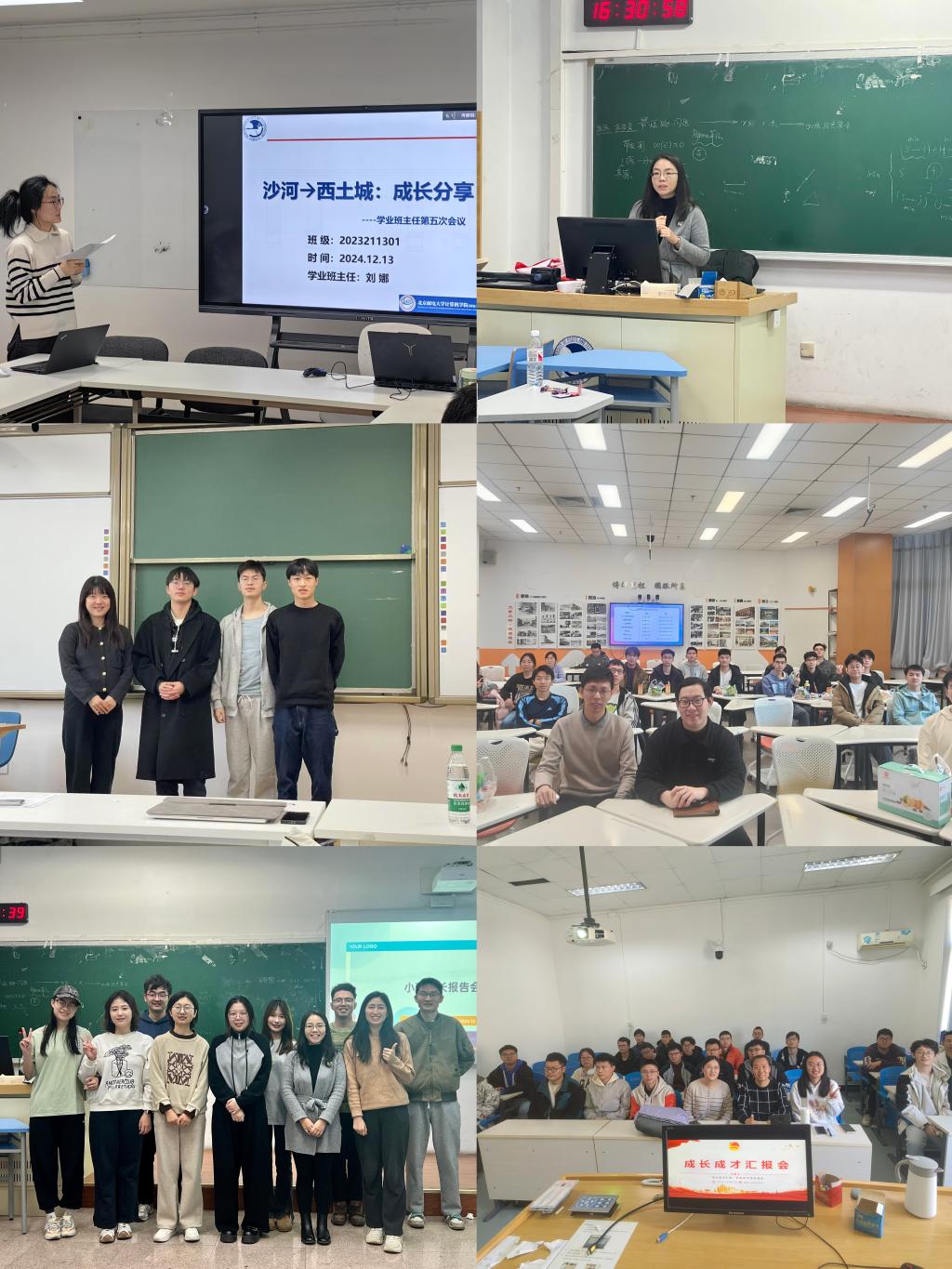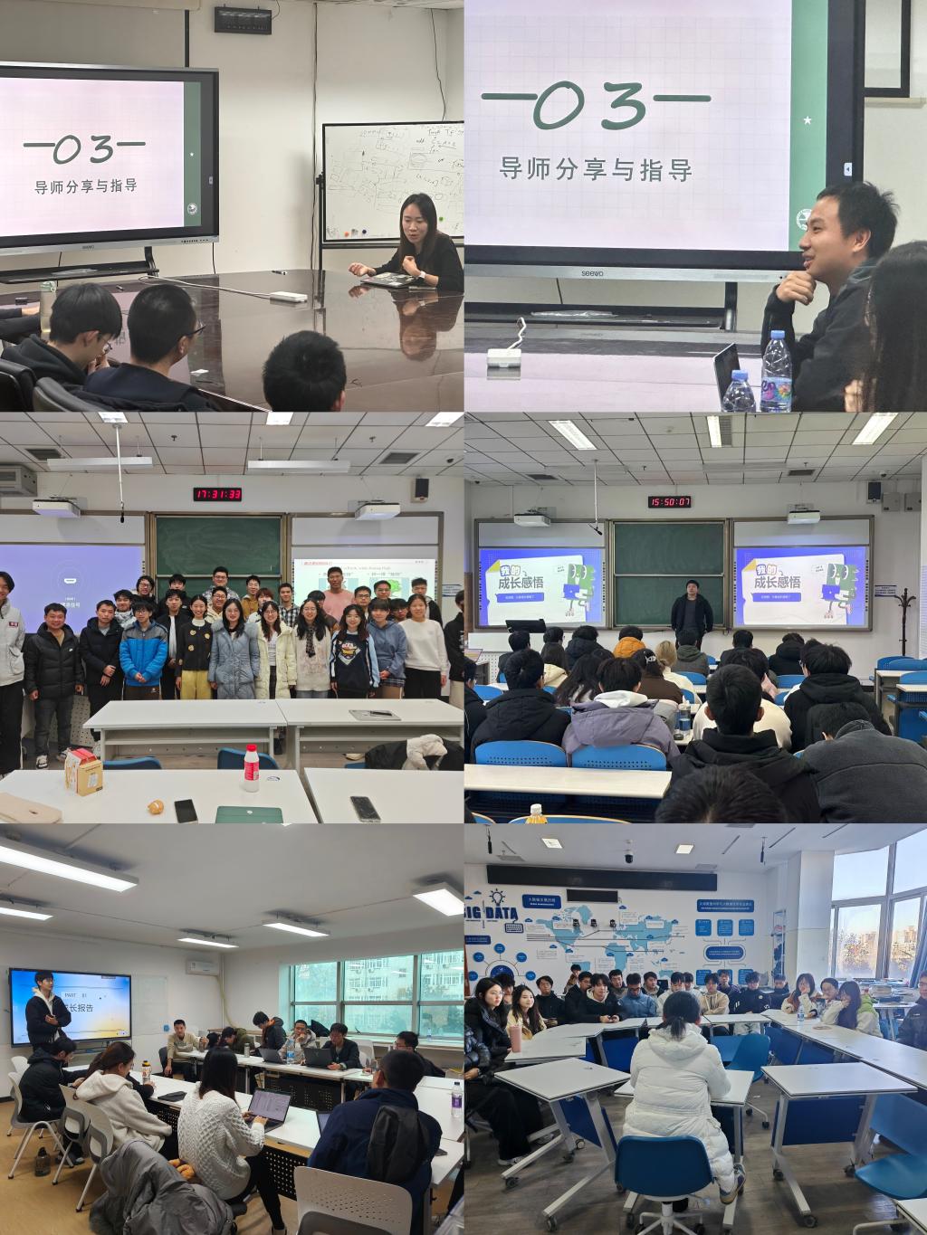 各班的学业班主任和辅导员结合本班实际情况,统筹组织、精心策划,开展了一场场形式多样、内容充实的班会活动。有的班级以导师分享指导为主,邀请班主任通过实际案例为同学们分享学习干货,答疑解惑。有的班级则更加侧重同学们之间的互动交流,鼓励每位同学上台进行阶段性成果展示,分享自己在专业课程学习、竞赛项目实践以及社团活动组织中的经验和收获,相互学习借鉴,激发前进动力。还有一些班级积极拓展资源,邀请研究生学长学姐走进成长班会,围绕考研、保研、就业等同学们关注的热点话题,结合自身经历,详细介绍各个环节的关键要点和实用技巧。互动答疑环节上,学业班主任与辅导员凭借丰富经验,针对同学们在学业规划、职业选择等方面的困惑,提供耐心、精准的指导。